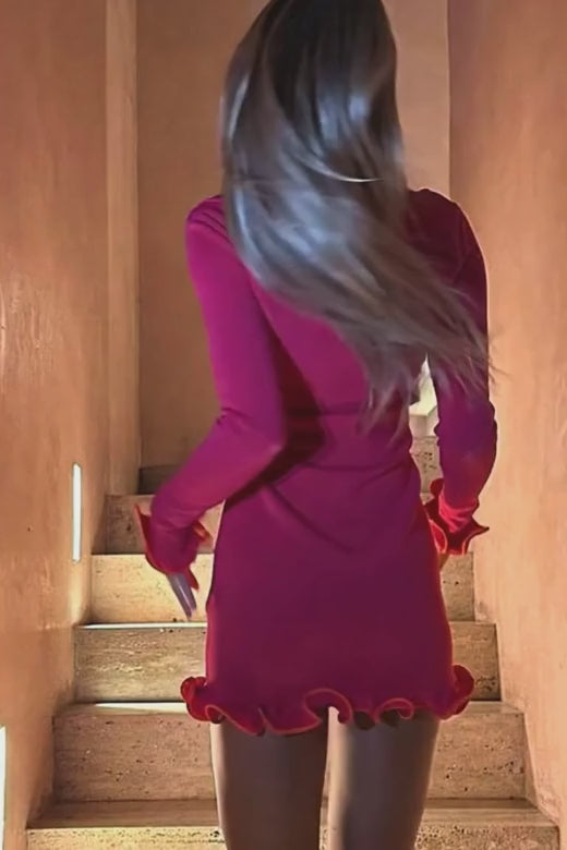 The Regina Long Sleeve Bodycon Mini Knit Dress in Magenta Pink is ideal for any occasion. With its high round neckline, long sleeves, and ruffled sleeves and mini skirt detailing, this dress offers a stylish yet figure-hugging fit. Plus, our bodycon dresses come in a range of sizes, so you can finally achieve the bodycon wardrobe you've been dreaming of.