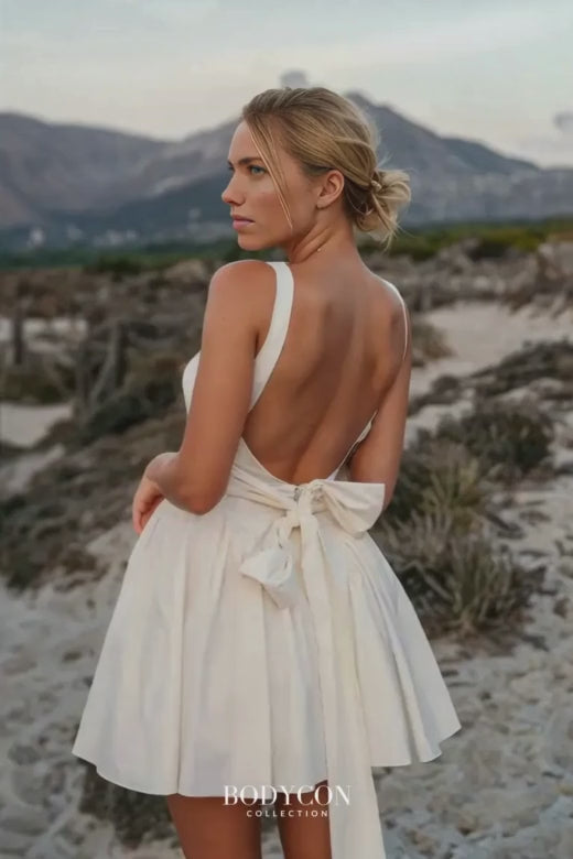 The Rian Bodycon Mini Dress in White Pearl is perfect for any special event, with a square neckline, sexy low cut open back with cute bow detailing, and A-line mini-length finish. The fabric moves effortlessly with the body, and its barely-there weight makes it ideal for warm-weather dressing. Available in all sizes, our bodycon dresses will elevate your wardrobe.